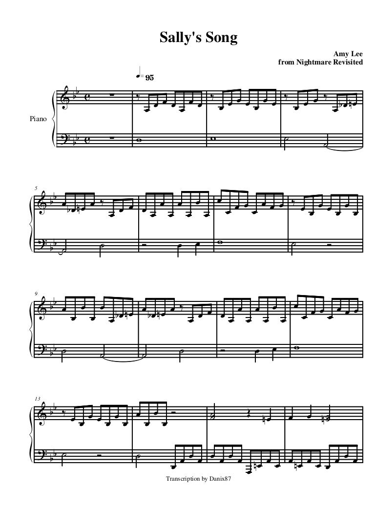 Download Sally's Song Piano Sheet Music Free Pdf Background