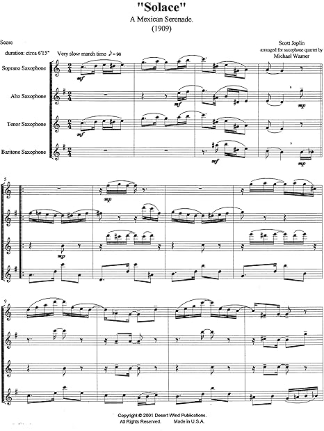 The video shows the sheet. This sheet music is solace by scott joplin. Solace is subtitled a mexican serenade, perhaps solace was first published by mfiles shortly before the attacks of 9/11 and, given the music's title and nature, it seemed appropriate to dedicate the work to those affected by those terrible events. Smp level 2 (late elementary).