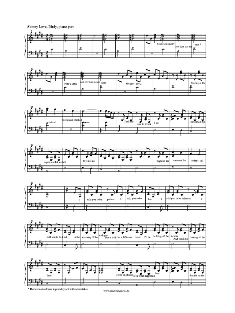 Skinny love sheet music bon iver / birdy. Music notation created and shared online with flat. Emamand at the end of all your lines. People viewing skinny love also like.
